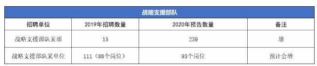 戰(zhàn)略支援部隊(duì)是一個(gè)大的系統(tǒng),根據(jù)已經(jīng)發(fā)布的機(jī)構(gòu)崗位數(shù)量來看,新增的招考數(shù)量和崗位數(shù)量都有明顯的變化,預(yù)計(jì)戰(zhàn)略支援部隊(duì)招錄文職人員會(huì)更多。